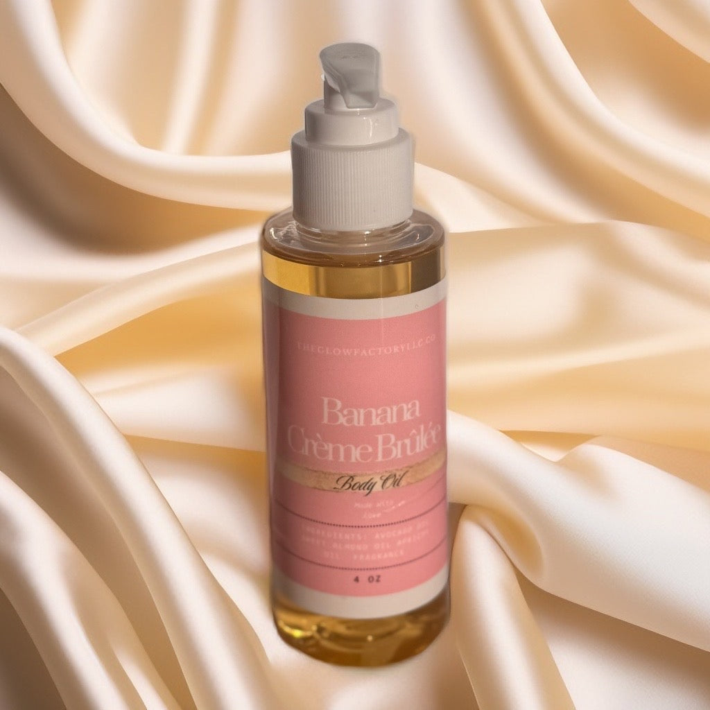 Indulge your skin in a warm, creamy blend that smells like fresh banana pudding, caramelized sugar, and soft vanilla custard. Our Banana Crème Brûlée Body Oil melts into the skin for an ultra-smooth, long-lasting glow without feeling greasy.